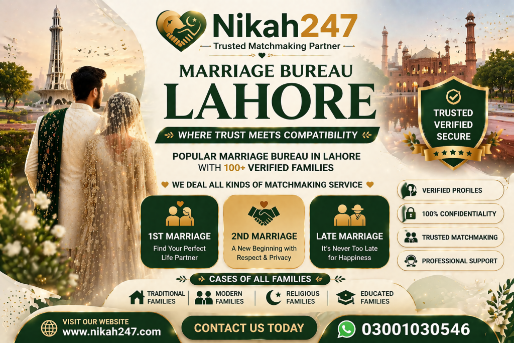 In this scenario, Nikah247 Marriage Bureau Lahore emerges as a reliable solution that simplifies and secures the entire matchmaking process. It provides a professional platform where individuals and families can connect with confidence.